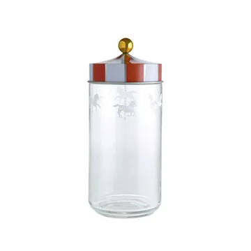The Circus jar from Alessi is an exclusive glass storage jar designed by Marcel Wanders for Alessi's well-known Circus collection. The glass jar is adorned with a beautiful etched pattern of carousel horses dancing around the jar, evoking the magical world of the circus. The airtight lid features a decorative golden knob that adds an elegant detail while making the jar practical and functional for everyday use. Thanks to the gastight seal, contents stay fresh longer, making the jar ideal for storing coffee, muesli, tea, cookies, or other dry goods. At the same time, it is so decorative that it can be displayed as part of your kitchen decor or as a unique decorative piece in the home.