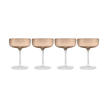 Fuumi champagne glasses Coupe 28 cl 4-pack from blomus are made of glass and have an elegant colour on the bowl that harmonizes with the clear glass stem and base. Serve your favourite bubbly in the mouth-blown glasses and enjoy a lovely evening together with good friends.