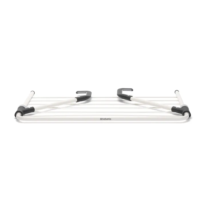 Lacking space in your home? The Brabantia drying post for door is the perfect alternative for you! The hanging drying post is made of stainless steel with adjustable arms that simply latch onto the top of your door. The drying post can be locked at the height that you prefer and takes up very little space when folded. Available in different colours.