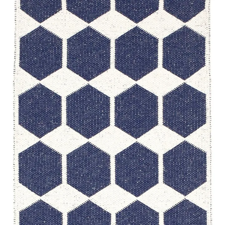 This plastic rug from Brita Sweden is an ideal choice for those with an eye for design and high quality. Its classic geometric design and materials are made to last, and will also add a touch of Scandinavia to any home. Brita Sweden's reversible plastic rugs are made from plastic foil and have been produced according to old Swedish weaving traditions. Much of the production is by hand, therefore the rags may vary in size slightly.