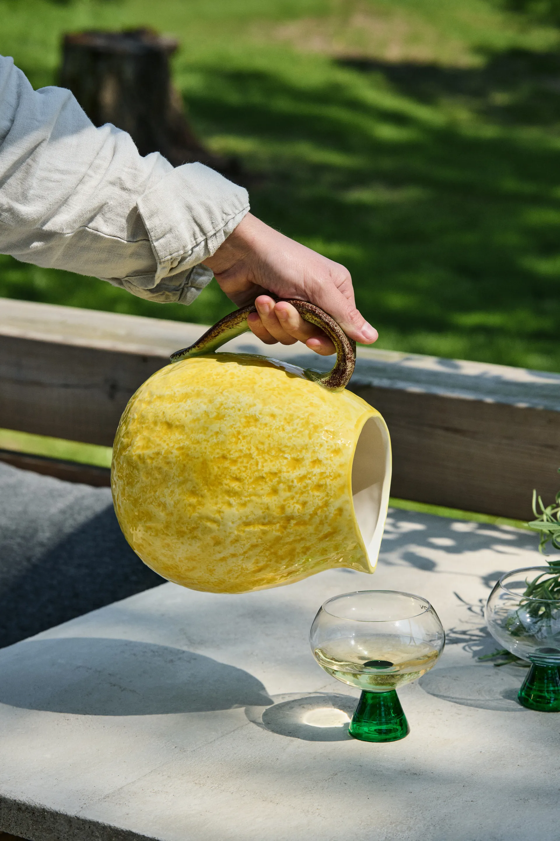 The Lemon jug 21 cm is a jug from Swedish Byon inspired by a lemon. The colourful jug has a grip-friendly handle and is easy to pour from thanks to its pour-friendly spout. The lemon jug has an organic structure that looks like lemon peel. Match the jug with other Lemon products from Byon to create a wonderful table setting.