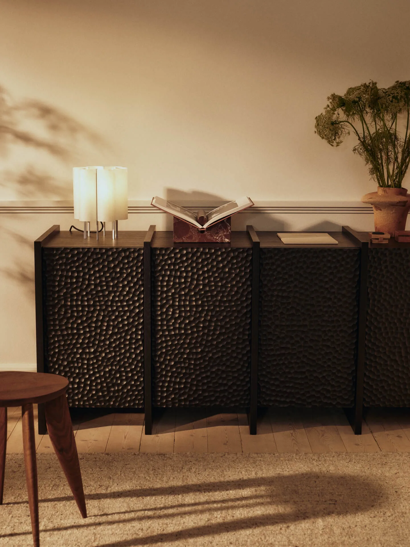 Feve side table from Ferm Living is crafted from FSC-certified solid walnut that highlights the wood’s natural grain and warm tone. The walnut table features elongated, elliptical legs that meet a softly rounded tabletop for a harmonious, well-balanced look. Its sturdy construction and compact size make it perfect as a side table by the sofa, a bedside table in the bedroom, or a pedestal for plants and lamps. The sculptural shape adds character to the room, while the timeless design suits both modern and classic interiors. An elegant wooden table that combines function and craftsmanship in Scandinavian design.
