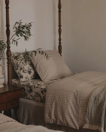 Stripe Mauve bedding set from Garbo&Friends combines quality and aesthetics. The organic cotton fabric in slub quality provides a unique texture and a linen-like feel. The set, consisting of a duvet cover and a pillowcase, has a button closure for easy bedding and an elegant finish. Perfect for a soft and stylish sleeping environment.