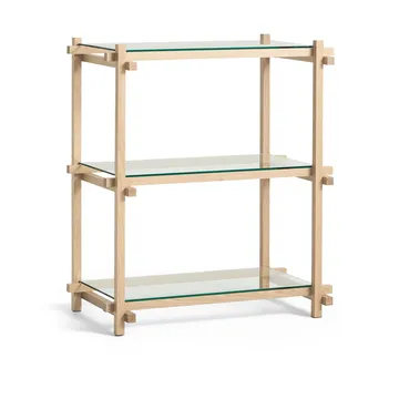 Woody Column shelf, Oak-clear glass, low HAY