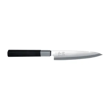 Kai Wasabi Black sashimi, -yanagiba knife from the Wasabi Black series, has a single-edged, long, and narrow blade with a slight curve - perfect for slicing thin pieces with precision. The knife features a handle made from a combination of polypropylene and bamboo powder, giving it antibacterial properties. Kai's sashimi knife is particularly suitable for preparing, for example, sashimi or sliced raw fish, but it is also an excellent knife for cutting large pieces of meat and other similar moist foods.