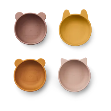 The Iggy silicone bowl 4 pieces from Liewood is made from 100% silicone and is perfect for the child's first meals. These silicone bowls are unbreakable, dishwasher safe, and adorned with playful animal details. The compact size is ideal for small portions or snacks.
