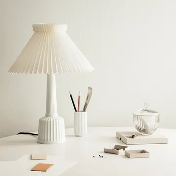 Esben Klint table lamp from Lyngby Porcelæn is a timeless design piece created by Esben Klint that combines the elegance of the folded Le Klint lampshade with the Lyngby vase’s characteristic grooves. The table lamp is handmade in porcelain and pays homage to the functionalism of the 1940s, bringing a sophisticated and understated presence to the living room, hallway, or bedroom. Its pure form and carefully executed details make the lamp a decorative light source that both enhances the interior and creates a warm, inviting glow.