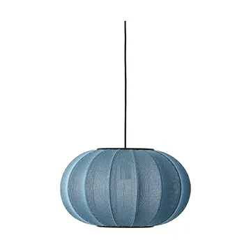Knit-Wit 45 Oval pendant is a unique lamp from Made By Hand, designed by Iskos-Berlin. It is made from a polyester lampshade and an aluminium base. What is special about this lamp is the knitted pattern that gives a distinctive and decorative light. Each lamp is unique and contributes to a pleasant atmosphere in the room.
