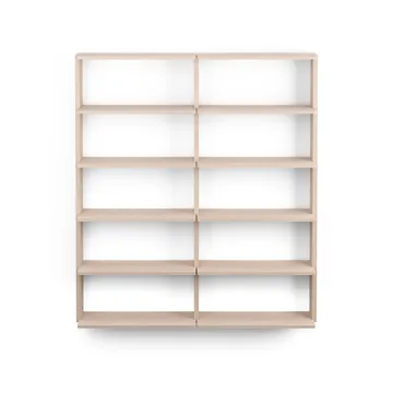 Gridlock - T2-A12-0 shelf from Massproductions has shelves made of solid FSC-certified ash and sides of plywood with an ash veneer surface. Although the construction of the shelving system may seem simple at first glance, it took several years to develop the design with the innovative brackets that easily lock the side and shelves together, providing a seamless overall impression. Thanks to the smart design, you can create a wall-mounted shelf with continuous horizontal lines that give a harmonious and orderly appearance. The Gridlock wall shelf can easily be modified or expanded as needed by adding more parts.