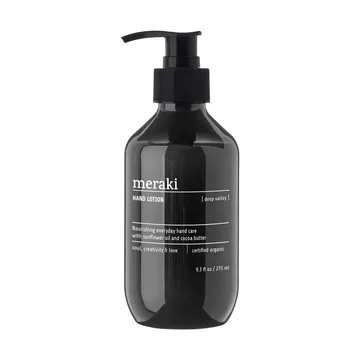 Meraki hand lotion 275 ml serves to nourish, moisturise and softening your hands with its premium ingredients. The hand lotion itself comes in a stylish package that contains a decorative pump. Place it on the night stand or by the sink as a gorgeous interior detail in the bedroom or bathroom. The ecologically-certified lotion can be used daily to nurture and rejuvenate your skin.