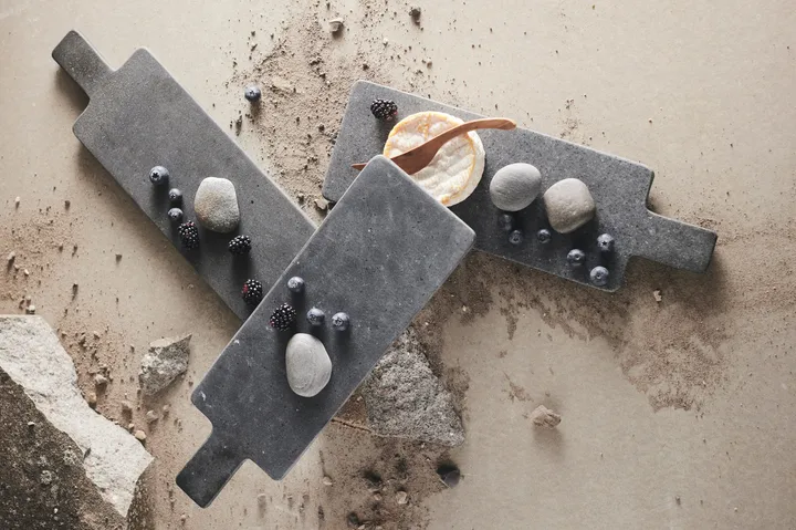 Valley tapas tray 12x37 cm from Danish Muubs is made of riverstone, a type of natural stone, which gives a luxurious look both for everyday use and for more festive occasions. Perfect for tapas just as the name suggests. The serving tray has a practical handle which makes it easy to carry between the kitchen counter and the dining table or coffee table. When not using the tapas tray, you can lean the tray against the wall on the kitchen counter and let it become part of the interior décor.