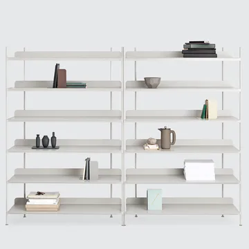 Compile configuration 3 shelving system from Muuto, designed by Cecilie Manz, is crafted in powder-coated steel with bent shelves and steel tubes ensuring stability. It offers a simple construction with a stylish expression and is available in black, white, and grey. Customise according to your needs with various combinations to fit any space.