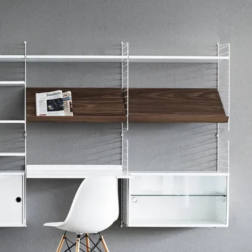 String magazine shelf wood is the perfect add on to your String System when you wish to display your favourite magazines or books. The part comes in different finishes and sizes so you can create your ideal String System shelf.