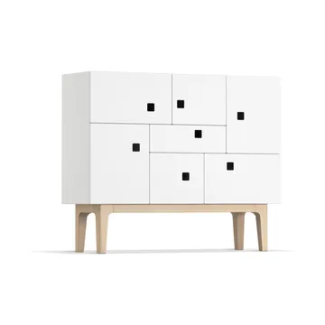 Peep C1 cabinet from Zweed, designed by Håkan Johansson, features uniquely placed handles to offer a glimpse of the contents. The built-in damping provides a soft closing of doors and drawers. Available in various models and colours with different leg frames to suit all needs and spaces.