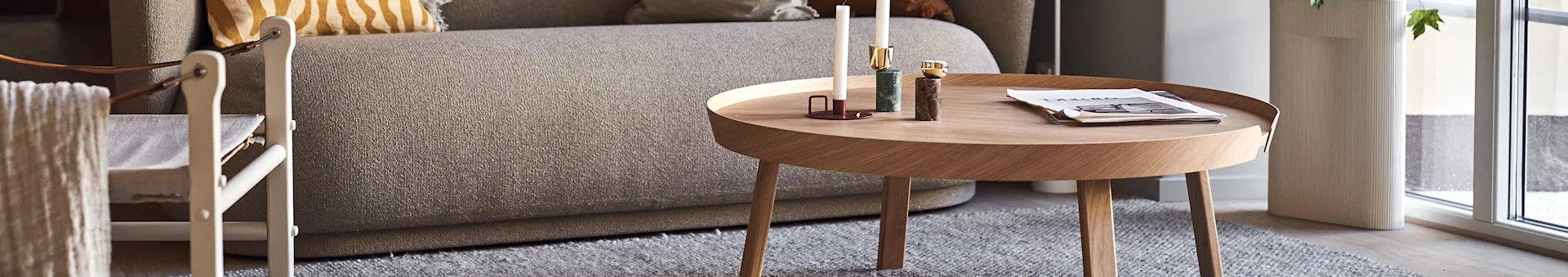 Since the coffee table is often placed in the middle of the room, its size and design play a significant role in the room's ambiance and character. But the coffee table also plays a large, practical role in everyday life, which should not be forgotten. Therefore, the choice of material, height, and placement, for example, are also important to consider.