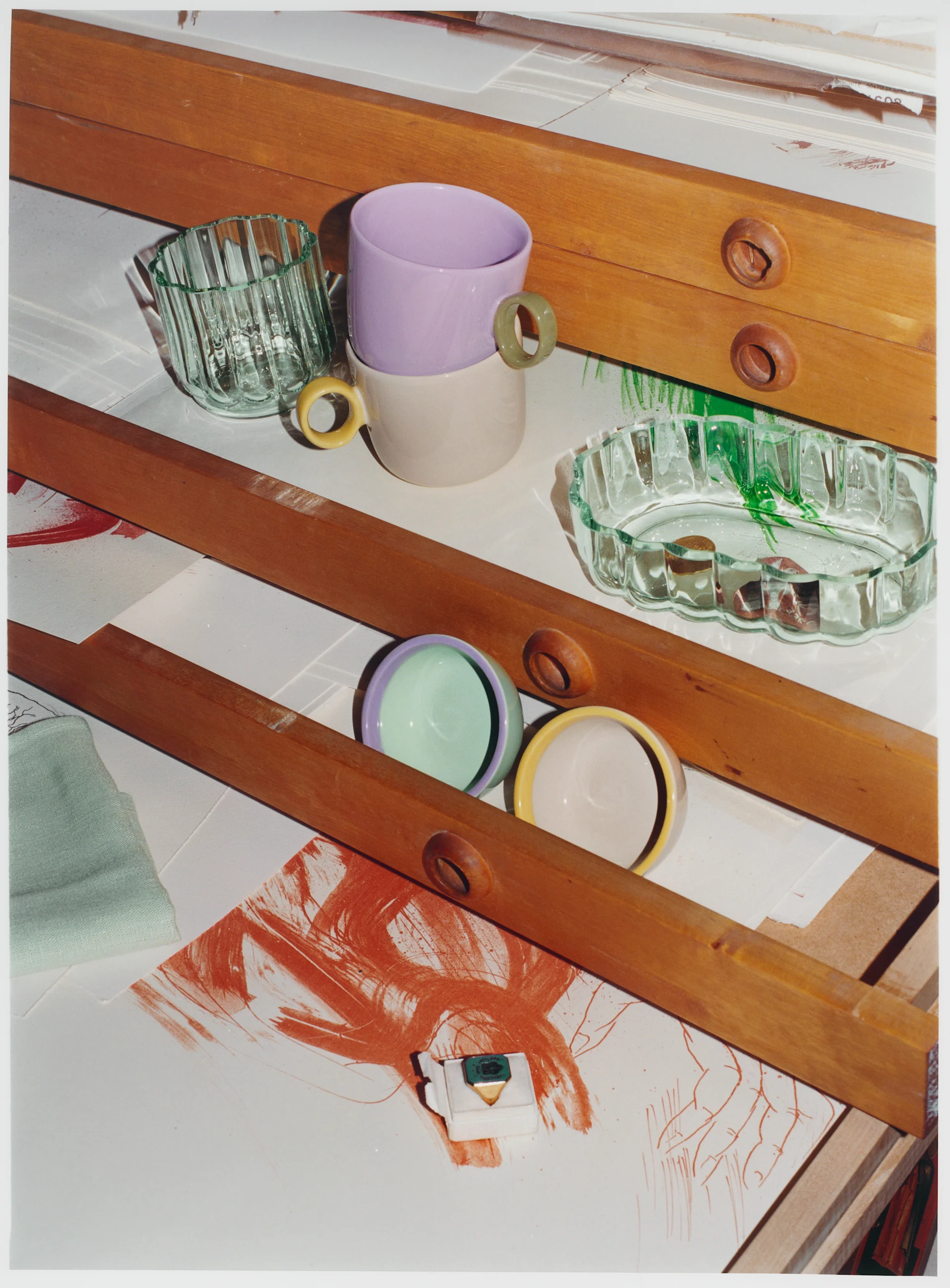 Play offers a collection that brings colour and playfulness to everyday moments. The energising pastel tones were inspired by Janni Vepsäläinen's trip to the south of France where she visited the Chapelle du Rosaire in Vence. The chapel, designed by Henri Matisse in the early 1950s, revealed details and thought-provoking elements that inspired Janni's creative vision.