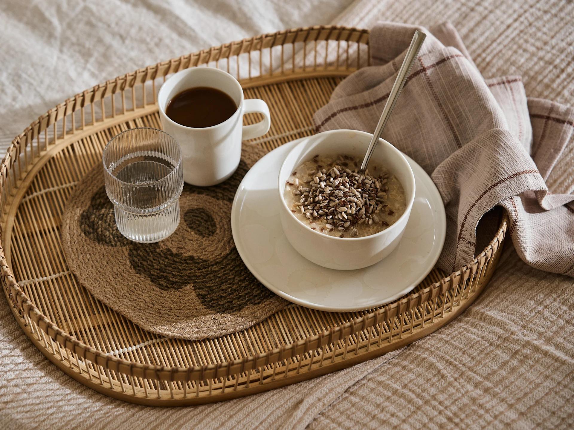 In Serenity, we look for designs filled with structure and natural, neutral tones with accents of warming shades of peach and cool tones of blue that brings to mind the purifying qualities of water. Serenity has a harmonious, earthy colour palette where we also see elements of brown and khaki.