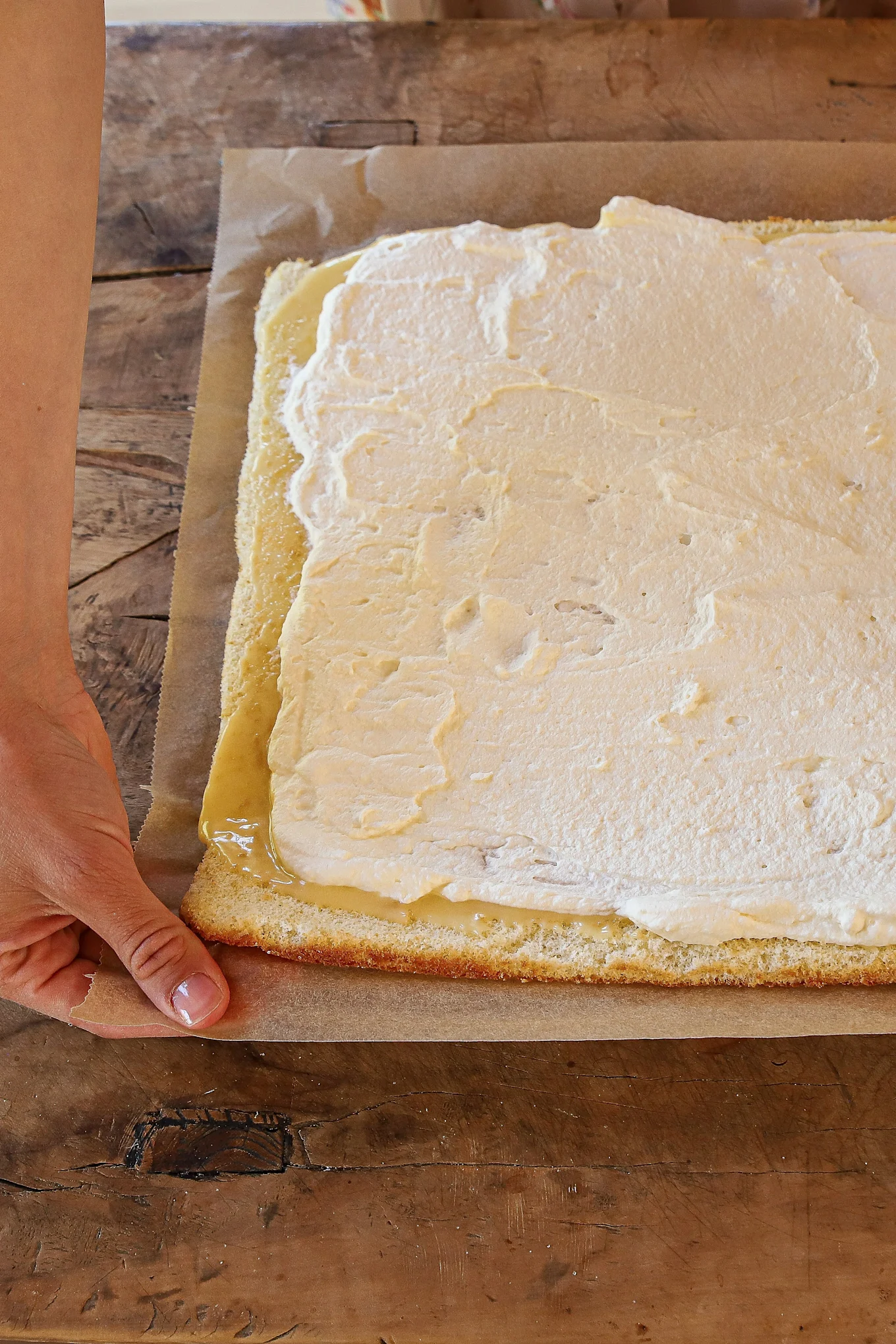 Tip: use the baking paper to help you roll your cake.
